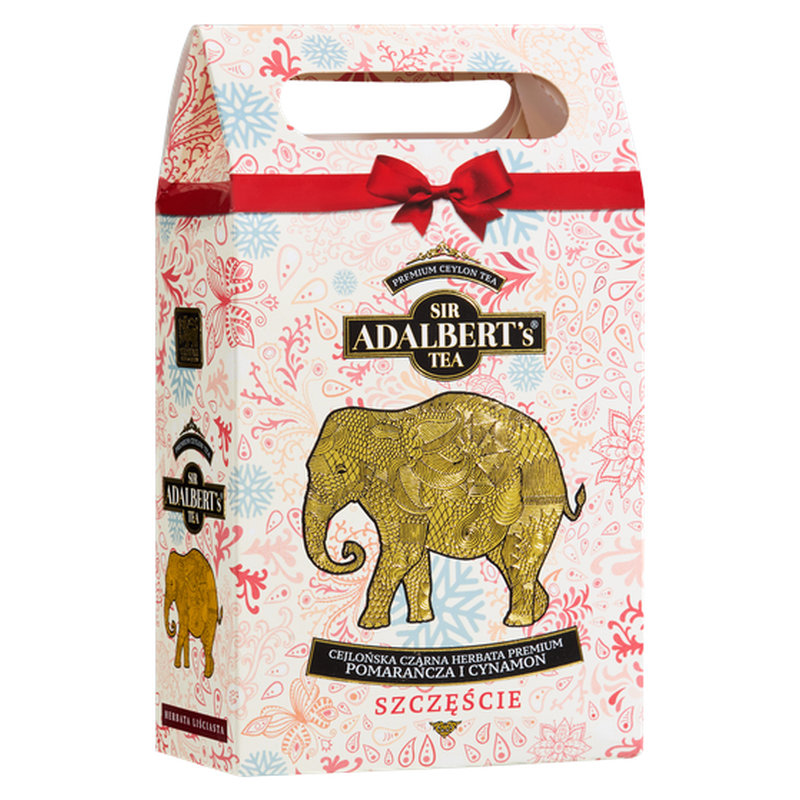 Sir Adalbert's Tea Szczęście to aromatyczna czarna herbata cejlońska premium z pomarańczą i cynamonem. Kompozycja powstała na bazie liściastej herbaty cejlońskiej OP1 ze Sri Lanki, która tworzy intensywny, głęboki napar i stanowi idealne tło dla ciepłych, otulających dodatków smakowych.