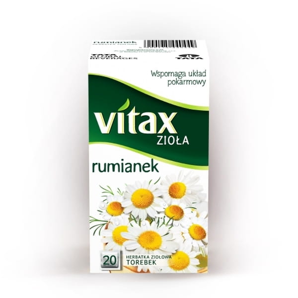 Rumianek herbatka ziołowa Vitax - posiada cenne właściwości prozdrowotne, pozytywnie wpływa na organizm: wspomaga trawienie, oczyszcza i regeneruje skórę, ma właściwości kojąco-łagodzące, a także koi zmysły i wycisza umysł.